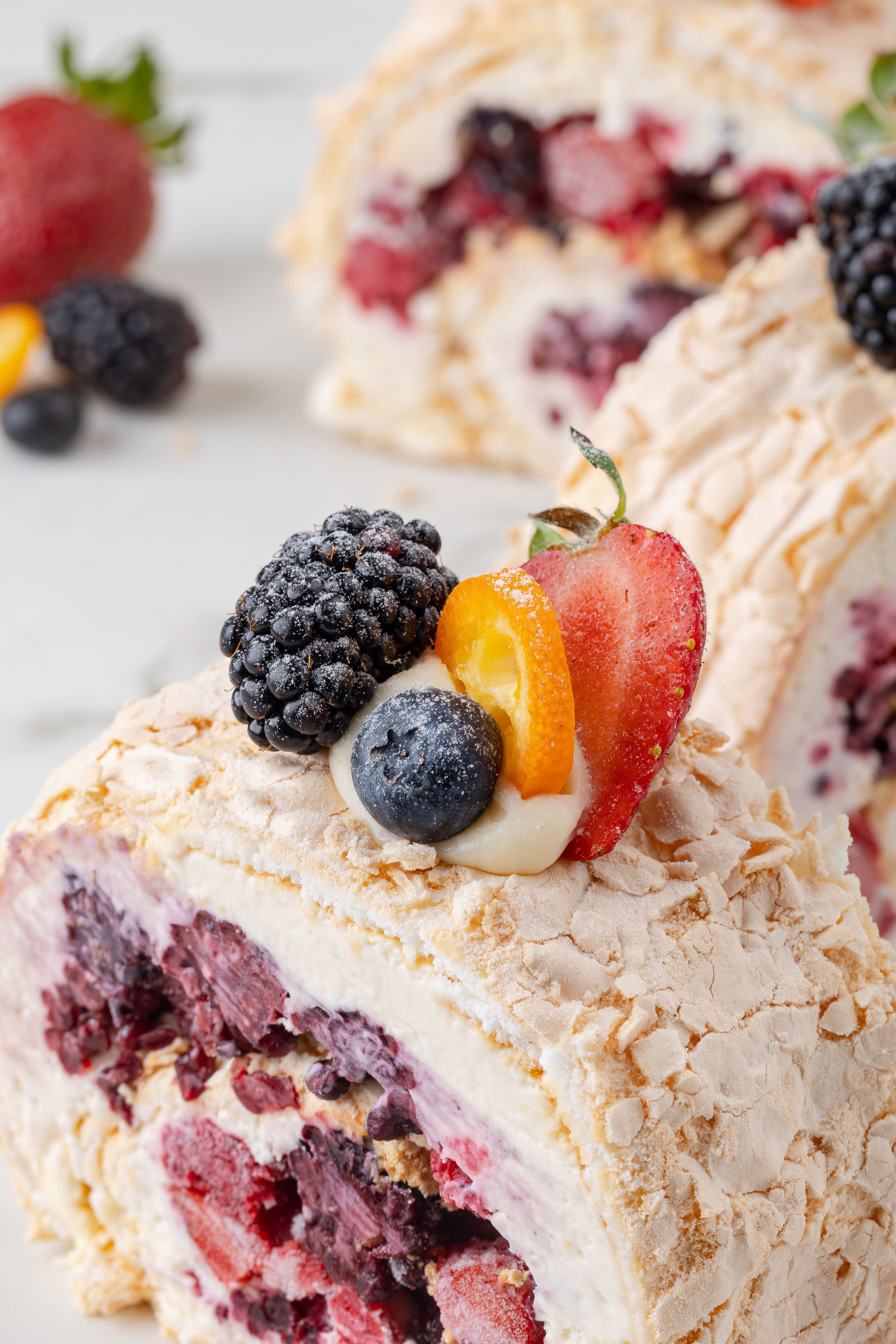 Lezzetli orman meyveleri ile süslediğimiz, dışı çıtır pavlova, içi muhteşem italyan kreması dolgulu Orman Meyveli Pavlova Sarma lezzetini muhakkak denemelisiniz.
